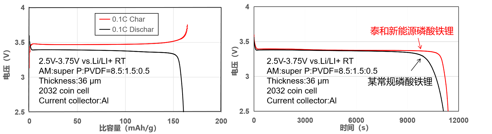 圖1扣電充放電曲線 圖2 扣電放電電壓曲線對比(0.1C)